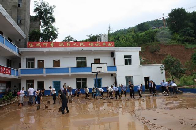 7月24日的强降雨造成旬阳县消防中队山后大量泥石流涌进了该中队大楼的一二楼,单位院内淤泥达半米多深,宿舍、营房、食堂等均被淤泥掩埋,使消防官兵一时食宿无着落,而此时的官兵战士却为了帮助受灾地区抢修公路、营救被困人员、清淤、送水……无暇顾及其自身的安危与驻地的淤泥清理,仍然奋战在抗洪抢险一线。灾情发生后,县委书记邹俊杰、代县长张益民在第一时间前往消防中队查看灾情,并看望慰问了受灾的消防官兵。