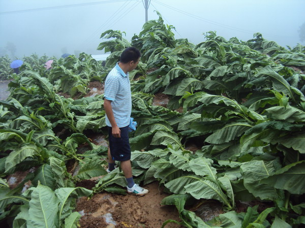 灾情发生后,县烟草公司迅速安排部署,组织烟站全体人员及时深入到受灾村组进行灾情调查核实和组织开展生产自救工作。组织发动烟农抢扶烟株,对翻背烟叶进行翻正,并采取高培土、追肥等措施,保证烟株及时恢复生长;抓好破损径叶的清理及田间卫生工作,对发生病害的烟田迅速进行农药防治,严控病害的发生和蔓延;督促烟农抓紧时间抢烤被损坏尚有使用价值的烟叶,尽量减少灾后损失;合理培育杈烟,并根据烟田肥力情况,适当追肥,增加有效叶片数;针对受灾烟叶的后期生长,加强灾后特殊烟叶烘烤的技术指导,确保烟叶烘烤质量;针对绝收的烟田,指导烟农改种其它晚秋粮食和蔬菜作物,解决群众的基础生活问题;督促指导村组农户加快灾后烟叶基础设施项目的维修恢复,提高烟田的抗灾能力;进一步做好烟农思想稳定工作,帮助烟农建立战胜洪涝灾害的信心,全体技术员坚守一线,加强对生产的服务与指导力度。