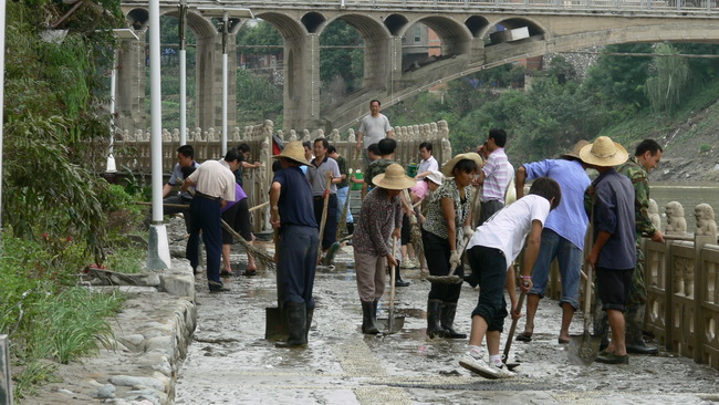 从7月25日早上开始,城建系统近100名干部职工奋战在景观步道,他们自备水泵,铁铲、扫帚、水桶、手电筒,夜以继日乘着尚未完全退去的洪水,用水泵从河里抽水冲洗和清除堆积的淤泥一直奋战到晚上10时,7月26日早上7时,他们又投入最后清淤和全面清洗阶段。截止26日上午11时,旬河北岸景观步道全部清洗结束,两天共清理淤泥约1600立方米。城区下水管网基本疏通,沿街堆积的土石方还在加紧清运,全系统干部职工共为灾区捐款8230元。