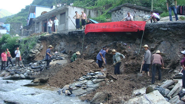 26日清晨,全镇干部将救灾重心向江南5个村转移,由五名领导带队,兵分五路奔赴一线,组织群众抗灾自救,重建家园。
