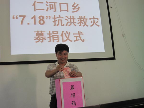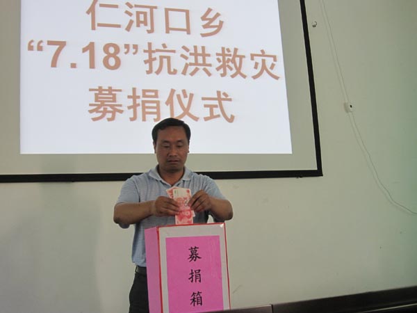 灾害无情人有情。一方有难、八方支援。为帮助“7.18”洪涝灾害的受灾群众尽早渡过难关,恢复重建,乡党委政府积极响应县委县政府号召,向全乡人民和社会各界发出爱心捐款倡议,通过发放张贴倡议书100份、广播宣传4场次、开通捐款电话等形式进行广泛宣传号召。7月26日,组织广大党员干部职工集中进行了“7.18”抗洪救灾捐款活动。损款仪式上,乡机关、事业单位全体干部,中心学校、卫生院、信用社等驻乡单位积极损款献爱心。截止26日,全乡共募集善款6000元。