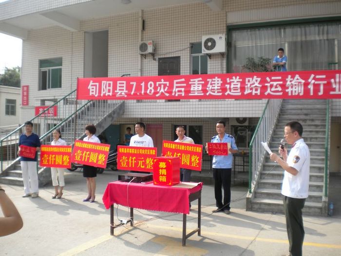 为了使灾后重建取得进一步的胜利,旬阳运输行业于8月3日组织了灾后重建募捐活动,本次活动得到了上级领导的支持和运输行业的积极响应。县交通局党委书记乐荣彪同志,以及6家运输企业、10家维修驾培企业的负责人参加了这次活动。乐荣彪书记为本次活动致词,大家在一片热烈的气氛中,踊跃捐款,献出各自的爱心。