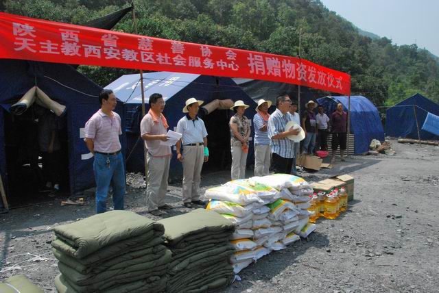 旬阳“7.18”、“7.24”特大洪涝、泥石流灾害发生后,县民政局及时向天主教西安教区社会服务中心汇报灾情。天主教西安教区社会服务中心高度关注旬阳灾区受灾群众生活,积极为旬阳灾区组织筹措总价值12万余元的700床棉被、10000公斤大米、480桶食用油等救援物资。