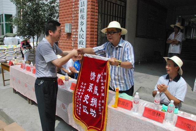 在发放救援物资的仪式上,陈瑞雪对旬阳抗灾自救和灾后重建工作给予赞赏。出席发放仪式的市、县、乡镇领导对省慈善协会和天主教西安教区社会服务中心的扶危济困、慈悲博爱精神表示诚挚感谢,并表示将带领灾区人民以感恩的心态、自强的精神,奋起抗灾自救,重建更加美好的新家园。桂花乡代表受助乡镇向省慈善协会和天主教西安教区社会服务中心赠锦旗。