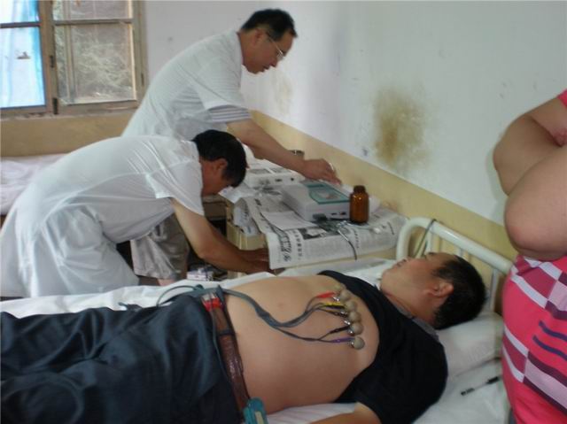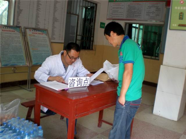 8月20日,赵湾镇卫生院各科室挤满了铁十九局四工区的铁路建设者,各位医生热情为前来询医查诊的人们问病情、量血压、测视力、听心脏、测血糖、做心电图和B超,医生们忙个不停,这是县医院“医疗下乡服务队”为铁路建设工作者免费义诊的动人场面。