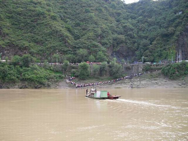 近一段时期,旬阳县受持续暴雨袭击,316国道部分路段水毁严重,8月26日,小河北王家山处发生二处山体崩塌,国道阻断,造成大量旅客滞留,为及时安全的转送旅客,旬阳县地方海事处就近紧急调配两艘客渡船前往崩塌水域开展旅客应急转移工作。