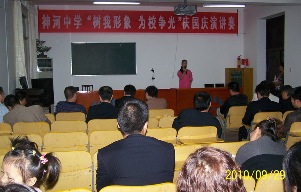 9月29日晚上,神河中学在会议室举行了迎国庆以“树立形象,为校争光”为主题的教师演讲比赛。来自全校的12名选手参加了比赛。他们中有在三尺讲台传授知识多年的老年教师,也有刚刚加入教育系统不足一月的年轻教师,还有从事学生管理工作的生活教师。演讲比赛开始后,选手们精神抖擞地走上演讲席,或讲述身边爱岗敬业模范人物的感人事迹,或颂扬团结奋战的教职工群体,或慷慨讲述职业道德建设的重要意义。他们以翔实的数据、生动的事例描绘了学校教师敬业奉献的高尚情操和艰苦奋斗的务实作风,饱含激情地憧憬神河中学辉煌的未来。精彩的演讲,引来观众们阵阵热烈的掌声。