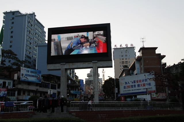 我县祝尔慷广场大屏幕LED广告电视墙国庆节期间投入试运行,该多媒体动态彩色播放平台具有播放体育赛事、转播电视节目、商业广告发布等多种功能。该电视墙对提升我县城市品位及市政亮化工程有着积极促进作用。