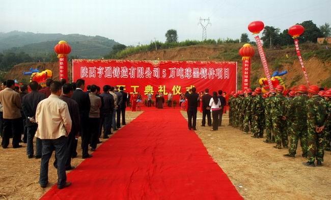 10月9日上午,陕西亨通铸造有限公司年产5万吨球磨铸件生产线项目开工仪式活动在旬阳县生态工业园区青泥工业小区隆重举行。市委常委、纪委书记郑光照,县上领导邹俊杰、陈昌学、张益民、曾朝阳、陈德智、皇甫健、王道祥、张继盈、党永前等领导出席开工仪式。