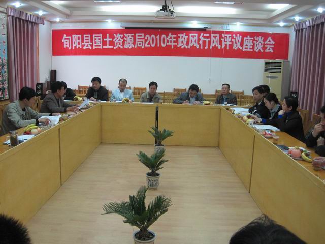 为进一步搞好国土资源管理工作,全力冲刺2010年度各项工作任务,旬阳县国土资源局于10月15日召开了2010年政风行风评议座谈会。县直有关部门负责人、社会各界群众代表和该局聘请的政风行风监督员参加了会议。