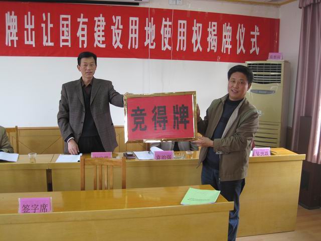11月28日下午,旬阳县国土资源局受县人民政府委托,依照国有土地建设用地使用权挂牌出让有关法律规定和法定程序,成功挂牌出让一宗建设用地,该地位于城关镇草坪社区镇旬公路内外侧(原草坪收费站),出让面积150亩(100000㎡),价款1265万元。竞得者是旬阳县现代物流商贸有限公司。