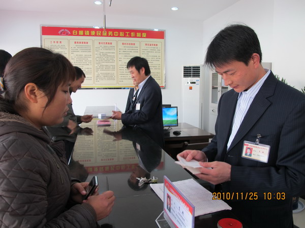 “你看这多方便,只要十几分钟,我这事就办成了,还不跑路”,一位十里洼村办理家电下乡的村民这样说到。11月26日,白柳镇便民服务大厅迎来了首个办理业务的群众。