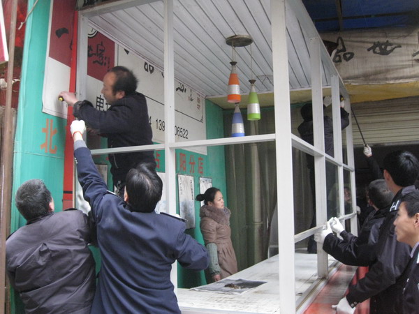本次整治工作严格按照依法行政程序办事,双创指挥部从公安、城建监察、卫生、环卫、工商、城关镇等执法部门抽调80余名干部,组成宣传动员组、治安维护组、协助拆迁组、安置保障组、整治巩固组,在阴历年前由双创办、城建局、工商局、城关镇人民政府等部门联合发布了《鲁家台市场专项整治告知书》,发至所有经营商户,同时将《旬阳县城鲁家台临时市场专项整治实施方案》放大张榜公布于众。年后在正月初七至初九又利用三天时间挨家挨户做通各经营户的思想工作;2月12日(正月初十),大多数经营业主拆除各自违章搭建的蓬帐和各类构筑物,自行搬迁规范经营。对少数拒不执行的,工作组实施了依法强行拆除市场内各类违章搭建的蓬帐和各类构筑物及临时设置的围挡。城区鲁家台集贸市场的规范整治和依法取缔,将有力的促进了我县创建省级卫生县城目标的顺利实现。