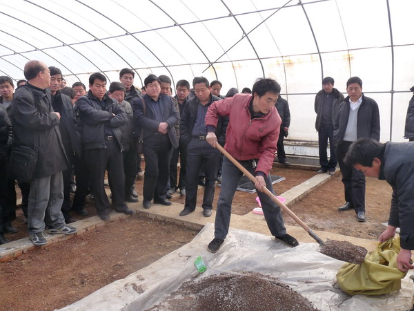 挖坑、整地、浇水、下种、施肥••••••烟草技术员忙碌的示范着,演示着。全县23名烟站站长及各站具体负责湿润育苗的技术人员以及烟草局的烟叶工作人员,共60多人参加了现场会。