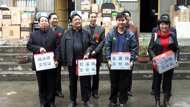 仪式上为8个乡镇及社区发放了计算机、投影仪等资源共享设备。