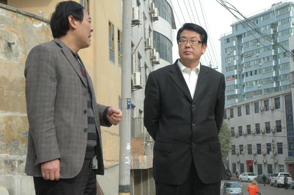 邹俊杰一路步行,沿县新华书店至高家沟、健康路检查,沿路认真仔细查看,并听取了该片区相关负责同志的汇报,发现问题,现场提出了要求和解决方案。