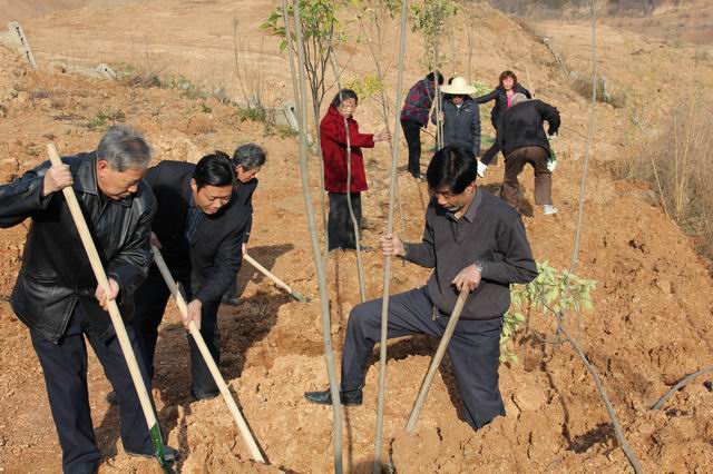 3月27日,城关镇鲁家台社区组织20名社区干部和离退休老党员深入宋家岭植树造林60余株,用实际行动为双创加油。