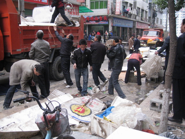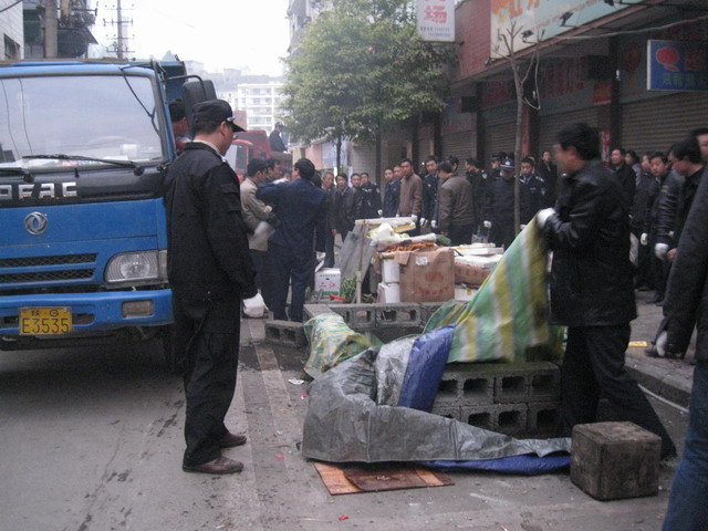 此次整治按照“统一领导,部门协作,联合行动”的工作方针,将抽调人员分成宣传动员工作组、治安维护工作组违章拆除工作组、安置保障工作组、整治巩固工作组五班人马,同步进行,将所有经营户搬迁至高家沟专业市场、康华园果蔬市场内经营。本次整治共出动人力140余人,彻底拆除下菜湾市场内各类违规违章临时搭建的帐篷、石棉瓦房等经营户,其中水产批发7户、坐地摊贩经营户93户、卖肉18户、卖水果类5户、卖干货2户、卖菜28户、宰杀家禽2户、卖鱼3户、其它6户;零散经营户61户,其中卖菜58户、卖水果3户。