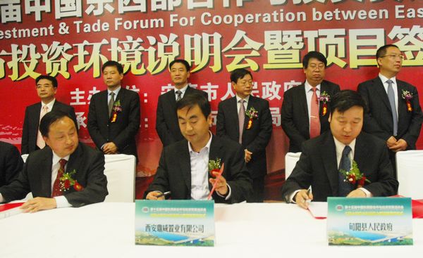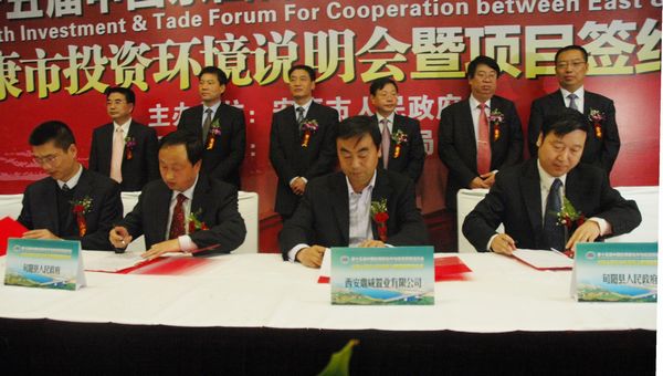 4月8日,安康市投资环境说明会暨项目签约仪式在西安曲江宾馆第三国际会议厅举行,我县集中签约六个项目,引资金额25亿元。县长张益民、副县长张继盈出席签约仪式。