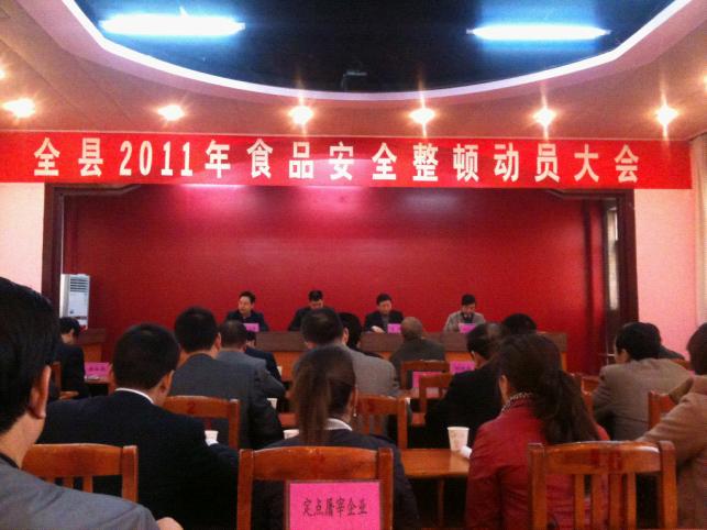 为切实解决食品安全突出问题,全面落实2011年旬阳县食品安全整顿各项工作任务,县食品安全委员会于4月8日召开了“2011年食品安全整顿动员大会”。会议由县委宣传部部长程海林主持,县政府副县长曾炜、政协副主席朱远胜出席会议。