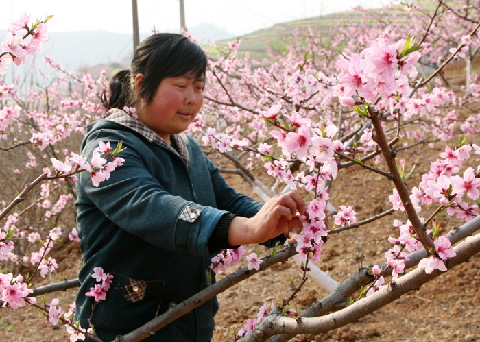 县城关镇岩湾村三组,这里漫山遍野桃花开,桃花映红了山野,也映红了种果人的笑脸,这一切预示今年又是一个丰收年。