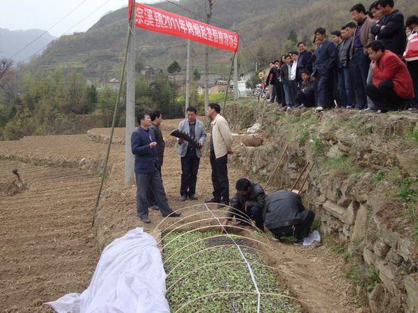 4月11日上午,棕溪镇全体镇村干部和烟草技术人员百余人集聚王院村召开2011年烤烟起垄假植现场会。会上,烟草技术员对子母床管理、装袋、施肥、起垄分别作了细致的示范讲解,为切实提高烟叶质量和单产注入技术含量。同时要求烟草技术员因地制宜,按地块类型逐户开出配方施肥单,按照每亩不低于150斤的标准配施烟草专用肥,由联村干部和技术员逐户、逐地块落实,督促指导种烟农户迅速掀起起垄假植高潮。据悉,该镇1万余亩烤烟大田移栽工作将在五月中旬前全面完成。