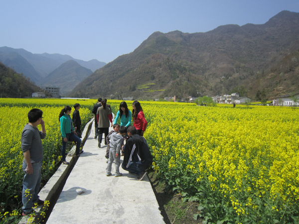 眼下正值油菜花儿盛开,踏进水泉坪,一眼金黄、一股花香顿时让人心旷神怡;只身于花海之中,与花齐舞、同蜂争芳,美得让人陶醉;沿水而上,寻泉至圣水亭,品水泉茶,香的沁人心脾;走进农家院,吃绿色农家茶,再酌几杯美酒,酒不醉人人自醉呀、、、。花香引得客人来。近期,水泉坪乡村游可谓火爆,全乡5家农家乐接待均创新高,据不完全统计,4月9日至10日两天,水泉坪接待游客500余人次。