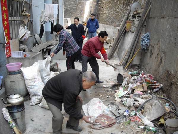4月10日上午9时,汞锑公司经理梁汝国率先垂范,举起八磅锤 “哐当”一声砸向花费了2千多元的刚搭建不久的砖混结构的厕所,拉开了向乱搭乱建宣战的硬仗。在公司经理榜样作用的感召下,在双创工作人员的苦口婆心宣传政策的攻势下,一楼居住的汞锑公司职工、退休人员、租住户纷纷行动起来,拆除搭建的厨房、顶棚、柴棚、鸡圈、剪断横七竖八凌空的绳子、铁丝,焚烧堆积的垃圾,清扫卫生死角,路过围观的群众络绎不绝。“这间厨房是我费心巴力盖起来,刚使用还不到2个月,花费了我近4千元,砸了,我确实心痛,我们下岗职工不容易,住房困难,没办法,但为了支持双创工作,还得忍疼割爱。”住户梁辉斌,忧伤的道来。附近居住的一位刘姓阿姨高兴的说,“你们搞创卫真是太好了,这里早都该清理了,我们大力支持你们的工作,有你们牵头组织群众,形成人人参与的机制,养成良好的卫生习惯,打造靓丽的居住环境,我们从心里头高兴。”