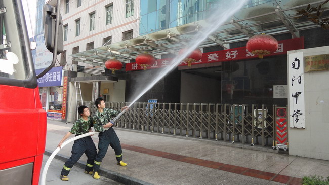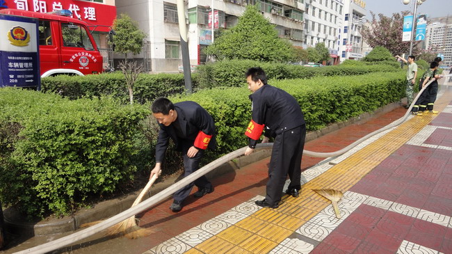在我县城区“整容”行动启动后,第十片区高度重视,积极行动。近日,组织片区双创办干部职工和消防官兵对片区内的卫生死角进行清理。消防官兵用消防水罐车对旬中大门、商贸街和祝尔康大道等重点部位进行冲洗,片区内的部分卫生死角得到清理,片区面貌有了新改观。