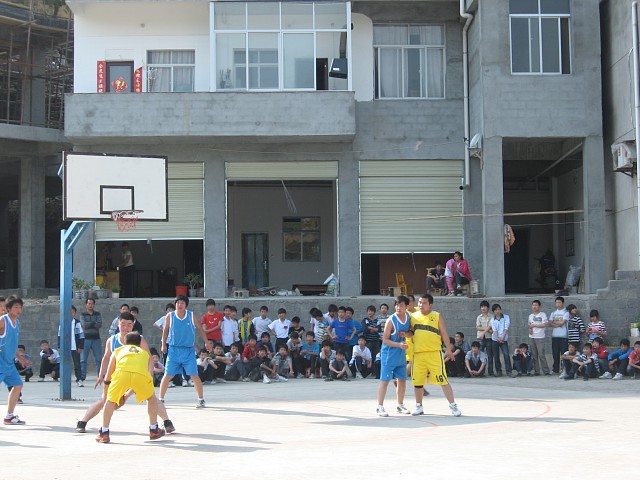 4月25日,蜀河镇初级中学操场上,当地集镇居民、干部职工与数百名身着各色节日盛装的中小学生们紧挨一起,紧张、兴奋地观赏着该镇第三届“龙头杯”篮球赛各项赛况,以此共庆“五一”、“五四”双节的来临。