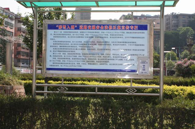 五月一日开始,交警一中队全体民警走上街头,向驾驶员和群众散发宣传单,并且向每个酒店发送相关规定,要求酒店向旅客尽到告知、提示责任。在广场设立“醉驾入刑”宣传专栏,要求各运输公司悬挂宣传标语,在城区的户外电视大屏滚动播出“醉驾入刑”相关规定。