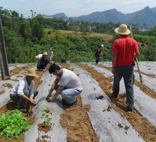 在丰家岭村广袤的烟田里,男女老少忙得不亦乐乎,打塘、栽苗、浇水,邻帮邻,亲帮亲,时而话家常,时而论“心经”。该镇镇长和烟站站长实地栽种,与烟农同劳同乐,掀起烤烟移栽热潮。