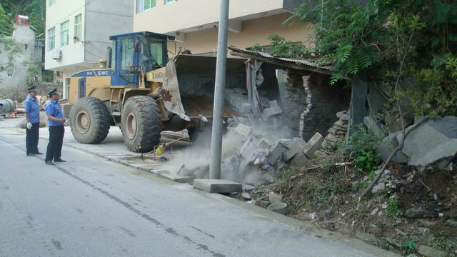 在5月23日、24日的整治活动中,在公路沿线乡镇政府、公安、土地等部门的大力配合下,对涉路违法行为进行了重拳出击,先后清理沿路堆放建筑材料300余方,拆除违章建筑和地面构筑物15起和违法设置广告牌3处。