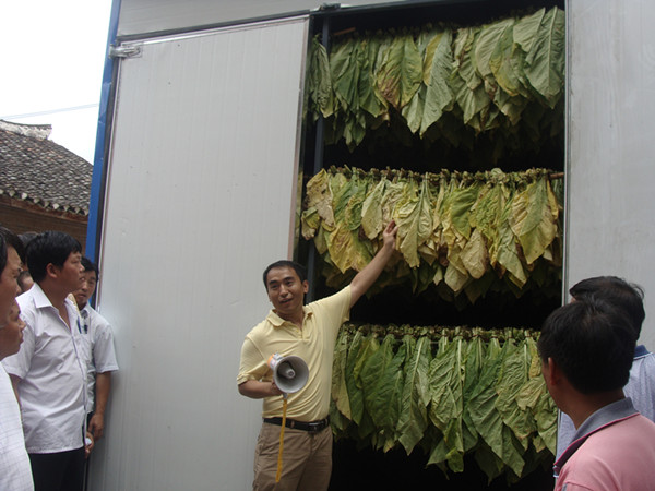 俗话说:“三分种,七分烤”,烟草烘烤的技术好坏直接决定了烤烟质量。从今年起,全县1500个新安装密集烤房全部采用“三段五步烘烤技术” (即变黄阶段、定色阶段、干筋三个阶段,变片、凋萎、变筋、干片、干筋五个稳温关键湿度点)进行烘烤。会上,中国烟草河南青州研究所研究员王传义重点就烟草的采收、烘烤和控制器的使用方法做了现场讲解,强调每炉装烟4000—6000斤,烤350—480杆烟,每杆控制在120——150片之间,整个烘烤时间120-160小时,一般下部烟5天,中部烟6天,上部烟7天,带茎烘烤再延长12小时左右。
