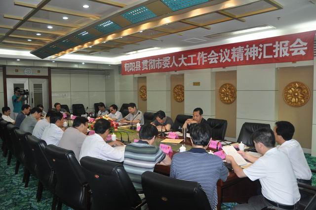 在7月12日上午召开的旬阳县贯彻落实市委人大工作会议精神汇报会上。县委副书记皇甫健、县人大常委会副主任熊生明分别代表县委、县人大分别就贯彻落实市委人大工作会议精神、县乡同步换届以及加强乡镇人大工作等方面做了书面汇报。在听取我县汇报后,胡凯庆说,旬阳县委高度重视、认真学习、深刻领会会议精神,注重加强县镇人大组织建设,充分发挥人大代表作用,有效保障人大及其常委会发挥好职能作用,使旬阳民主法制建设水平得到大幅提升,较好地促进了经济社会又好又快发展。旬阳县人大常委会在依法履行人大职责、充分发挥代表作用方面创造了许多好的经验和做法,一直走在全市前列,值得各区县学习借鉴。