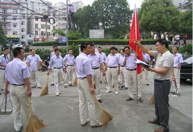 7月13日一大早,县教体局机关支部全体党员来到双创第十一片区,开展“大清扫”活动,用实际行动贯彻落实胡锦涛“七一”讲话精神,支持创卫。