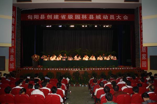 会议由县委副书记皇甫健主持,县长张益民作动员讲话,县委常委、副县长王道祥宣读了《旬阳县创建省级园林县城实施方案》,麻坪镇、公安局、丽都家园小区做了创建表态发言,会上县长张益民还和各单位签订了创建目标责任书。