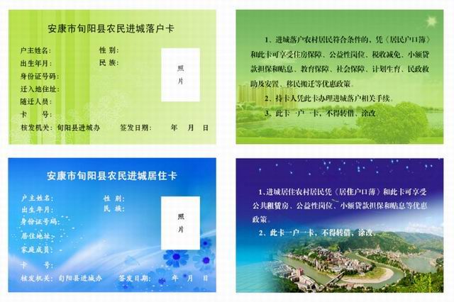 近日,旬阳县印制农民《进城落户卡》、《进城居住卡》,切实规范农民进城落户办理工作,进城农民凭《进城落户卡》或《进城居住卡》可方便、快捷、有效的享受到相关优惠政策。