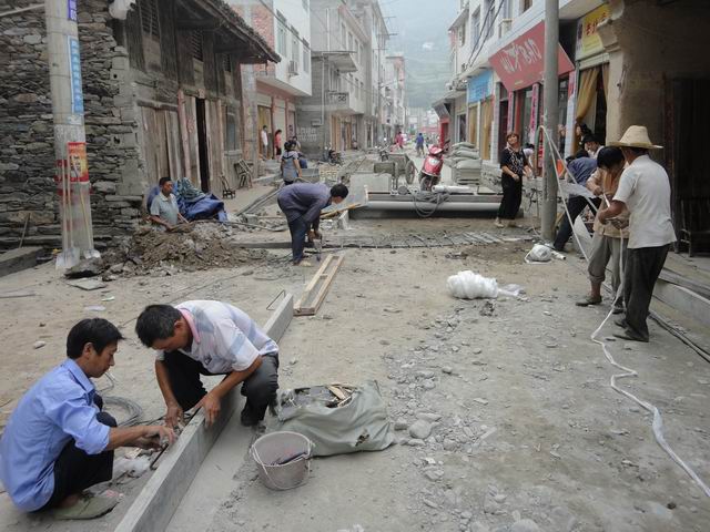 近期,走在赵湾镇街道上,看到的是施工队一片忙碌景象,听到的是搅拌机和振动盘的嗡鸣声,街道上的居民到处都在议论,这次集镇街道改造真是个民心工程。