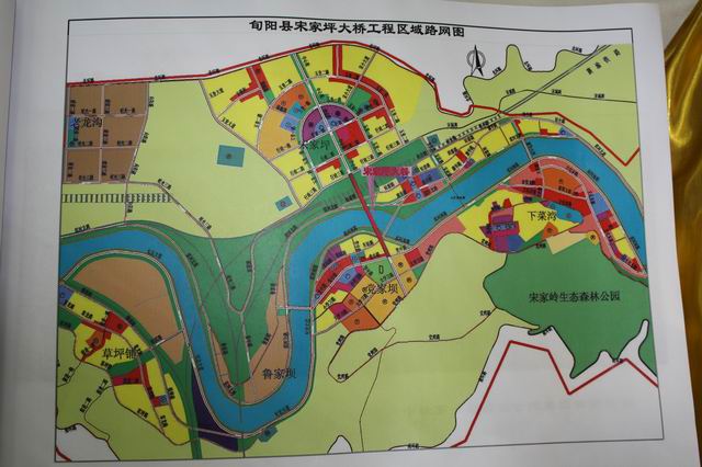 宋家坪大桥工程于2010年10月由我县委托中铁第一勘察设计院设计,经过实地踏勘,收集水利、地质、地震、河道、城市规划、路网布局等资料,对桥址进行了地勘勘探和地形测绘,今年4月完成初步设计方案,大桥南起消防队西侧商贸街中心,向北跨越102省道、南滨河路,襄渝铁路、玉皇路,终点接入宋家坪规划道路,全长567米。会议对设计方提出的几种初步建设方案进行了讨论,设计方将根据各方意见,对大桥工程设计方案做进一步优化和修改,在8月上旬确定最终设计方案。