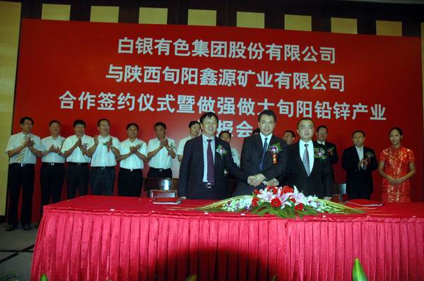 白银集团和鑫源矿业经过前期的合作,目前完成了资源储量调查、矿权评估等调查工作,具备了签署协议的条件。在合资公司的发展上,白银集团计划投入资金5亿元,对鑫源矿业现有30万吨的基础上进行扩能改造,到2012年扩建成100万吨的采选规模,合作后,预计年销售铅锌金属量7.75万吨,实现产值10亿元,实现利税4亿元。并积极延伸产业链条,发展深加工产业,实现资源的深度开发,把旬阳县资源优势转化为经济优势。