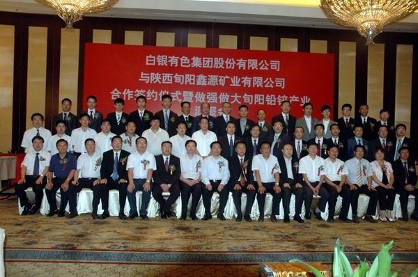 8月1日,白银有色集团与旬阳鑫源矿业有限公司合作签约仪式暨做强做大旬阳铅锌产业汇报会在西安隆重召开。会议的召开,标志着白银集团正式入驻旬阳,标志着我县与白银集团的战略合作进入新的发展阶段,白银集团与鑫源公司的正式“联姻”,实现强强联合,为旬阳的工业发展注入新的活力。陕西省工信厅副厅长王虹安,安康市市长方玮峰,市委常委、副市长王安利,白银市委常委、白银集团党委书记、董事长李培兴,旬阳县委书记邹俊杰,人大常委会主任陈昌学,县长张益民,政协主席王惠出席了签约仪式。