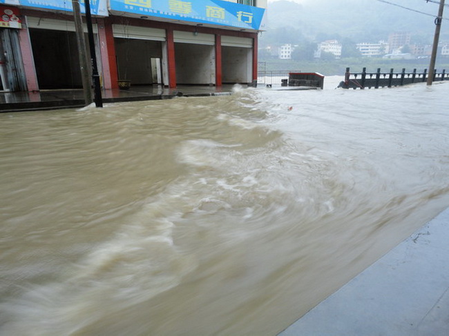 8月4日下午5点钟,根据旬阳县防汛指挥部汛情命令,蜀河镇迅速实施防洪预案,把镇干部分成五个工作组,组织集镇洪水线下的373户1400余名群众转移财物,有序撤离,同时抢险队集结待命,船只、电力、照明等抢险物资运送到指定位置。5日早上5点钟,汉江蜀河镇过境流量达到10000方每秒,洪水涌进集镇,到上午9点钟,洪水流量达到10200方每秒,集镇大部分街道被洪水淹没,最深积水达到1米多。