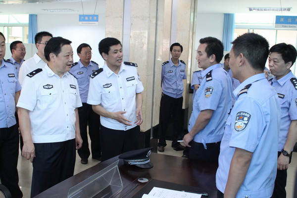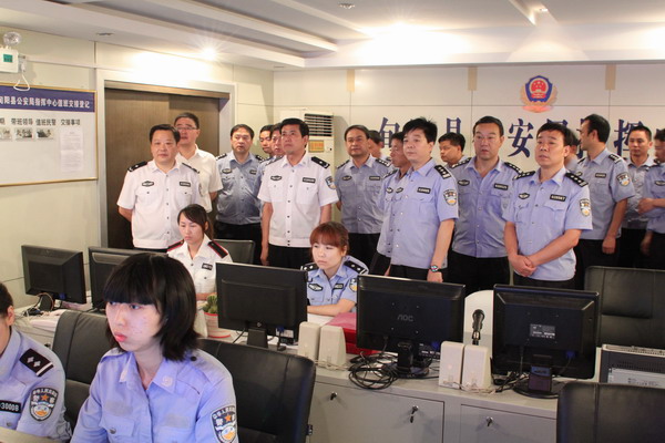 8月9日上午,参加全市治安防控体系建设推进会的十县区80余名与会人员,在旬阳县委常委、政法委书记王武臣的陪同下,深入旬阳县公安局观摩指导全县警务查报站建设、视频监控建设、专职巡防队伍管理工作。