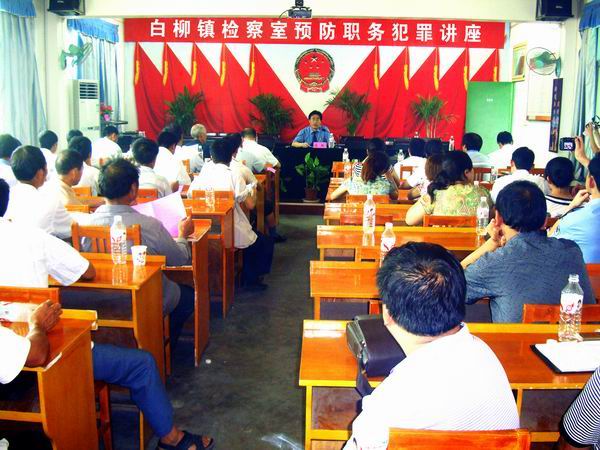 在8月15日白柳镇召开的镇村干部会议上,旬阳县检察院派驻白柳镇检察室的检察官为镇政府机关全体干部、镇属单位负责人、村上三职干部共110余名干部举办了一次以村级(社区)财务管理暨职务犯罪预防为主要内容的专题讲座。