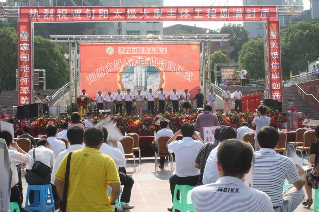 8月25日,旬阳第一大厦——太极大厦主体工程封顶。太极大厦,成为中华太极城新的地标性建筑。