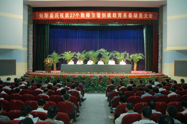 县长张益民首先对全县广大教育工作者表示节日的问候,对多年来关心、支持旬阳教育发展的社会各界人士表示衷心的感谢,他说,全县上下要准确把握教育名县的实质内涵,形成建设教育名县的思想共识,建立健全建设教育名县的工作机制,不断满足人民群众对优质教育、公平教育、多样化教育和终身教育的需求,让更多的人享受到优质的教育资源,从而实现好、维护好、发展好最广大人民的根本利益。会上,张益民对全县广大教师提出三点希望:一是爱岗敬业、关爱学生。广大教师要树立崇高的职业理想和坚定的职业信念,切实承担教育者的社会责任,满怀对受教育者的真心关爱,把全部精力和满腔真情奉献给教育事业,做爱岗敬业的模范。不抛弃、不放弃每一名学生,关心每一名学生的成长进步,以真情、真心、真诚教育和影响学生,真正成为学生的良师益友。二是奋发进取、严谨督学。教师是知识的重要传播者和创造者,要成为合格教育者,就必须不断学习、不断充实自己。广大教师要树立终身学习理念,努力学习新知识、新技能,不断提高教学质量和教书育人本领。要积极探索教育教学规律,更新教育观念,踊跃投身教育创新实践。要养成求真务实和严谨自律的治学态度,恪守学术道德,发扬优良作风。三是淡泊名利、志存高远。高尚的师德,是对学生最生动、最具体、最深远的教育。广大教师要自觉实践社会主义荣辱观,不断加强师德修养,树立高尚的道德情操和精神追求,努力做受学生爱戴、让人民满意的教师。