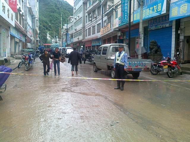 入夏以来,汉江洪水已经是第三次淹没蜀河集镇,群众情绪空前烦闷,全镇干部也同样是筋疲力尽。面对如此复杂的局面,蜀河交警中队从实际出发,立足本职岗位,急群众之所急,想群众之所想,在洪水来临之前,积极投入全部警力,确保集镇道路畅通,为群众及时撤离和抢运财产赢得了宝贵时间,使群众的生命财产没有受到任何损失。而洪水消退,清理打扫集镇道路同样是一场艰苦努力、刻不容缓的战斗,体力严重透支的民警顾不上短暂的休整,根据镇防汛指挥部的调度,顾大局识大体,放下正在组织清理中队场院塌方的工作,再次主动承担起临时交通管制的重任,为群众清理房屋内和街道上的淤泥提供安全畅通的良好环境,并抽调警力为劳力不足的商户提供直接帮助,力所能及的安抚和慰问受灾群众,把党委、政府的温暖和关爱通过民警的实际行动送入群众之中,既体现了人文关怀又密切联系了警民关系,在大灾面前彰显大爱。