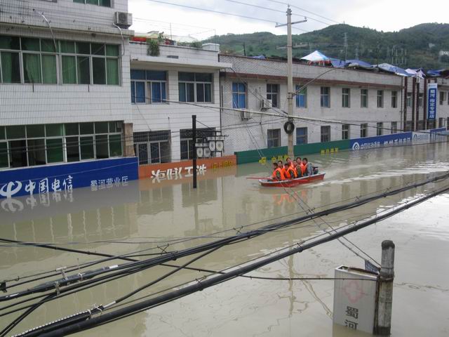 2011年9月19日零时30分,蜀河电厂下泄流量达17400m3/s,集镇水位上涨至209.1米。集镇沿街一、二楼进水,里街积水最深处达2米。面对严峻的汛情,该镇不等不靠,上下齐心,众志成城,全力抓好防汛各项工作。