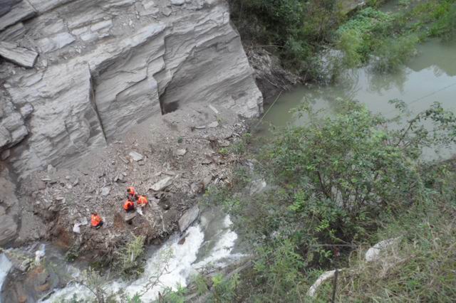 9月15日凌晨零点50分,麻坪社区火石崖告急。火石崖是麻坪社区解放前时期改河造地,开的一个山崖河道,宽约5米,长约50多米,呈一个峡谷状,河道水流紧急。这次滑塌是继8月14日滑塌后的再次滑塌。石块将河道塞的严严实实,致使上游形成了一个约5米多深的堰塞湖,严重威胁到火石崖上方住着26户群众,200多亩良田,和一个规模养殖厂的安全。镇党委政府连夜成立了有武装部长担任组长的临时排险工作组,15日早晨8时许将上游26户68名群众紧急撤离,妥善安置。由于连日的暴雨,河水暴涨给排险工作带来了极大的困难,连人员都无法进入更别说机械车辆进入了,工作组果断决定用爆破的手段来排除险情,在崖顶的公路边用保险绳,将爆破人员调入崖中,将密封好的炸药固定在水中的石头上,当日15时,一声巨响,堵塞物成功爆破。